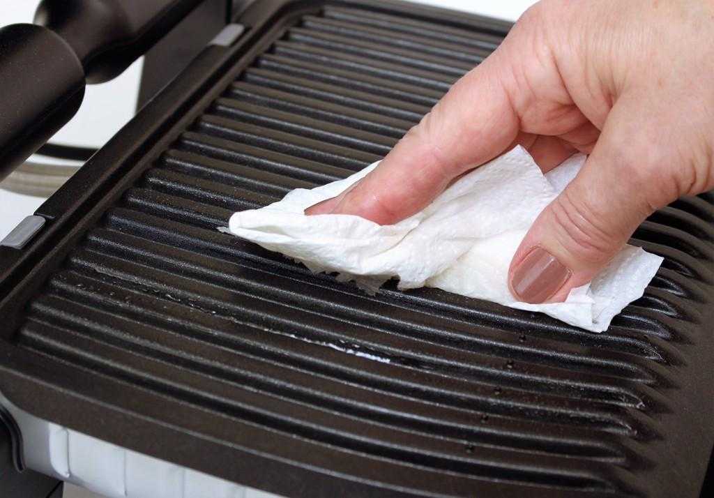 . Но если этого сделать нельзя, следует удалять остатки пищи входящей в комплект пластиковой лопаткой, а потом собирать влажной тряпкой. - Для обработки поверхности можно использовать небольшое количество моющего средства. Последним шагом будет обтирание решетки насухо.