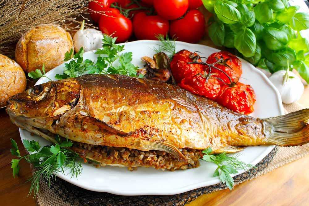 Карп, фаршированный гречкой