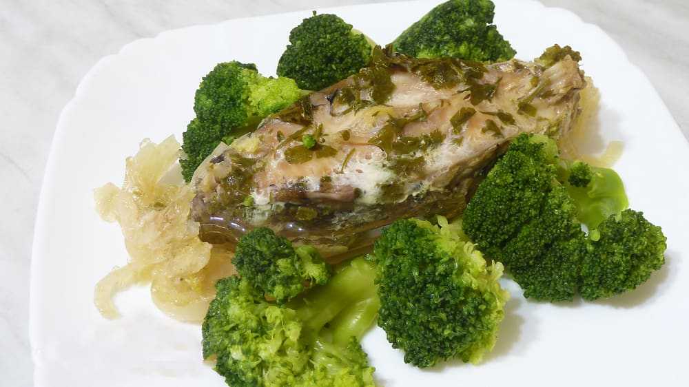 Рыба готовится час. Выходит 3 порции, общая калорийность – 1680 ккал.