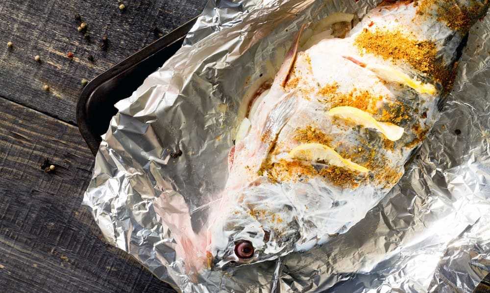При приготовлении в фольге рыба получается без зажаристой корочки