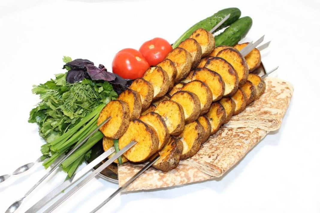Своеобразное блюдо является разновидностью вегетарианского шашлыка, который по вкусу ничуть не уступает мясу. Для его приготовления потребуется: