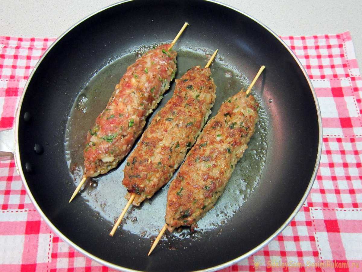 Не стоит делать люля-кебабы слишком толстыми. Если их толщина будет составлять от 2,5 до 3,5 см, то они хорошо прожарятся, но не успеют подгореть.