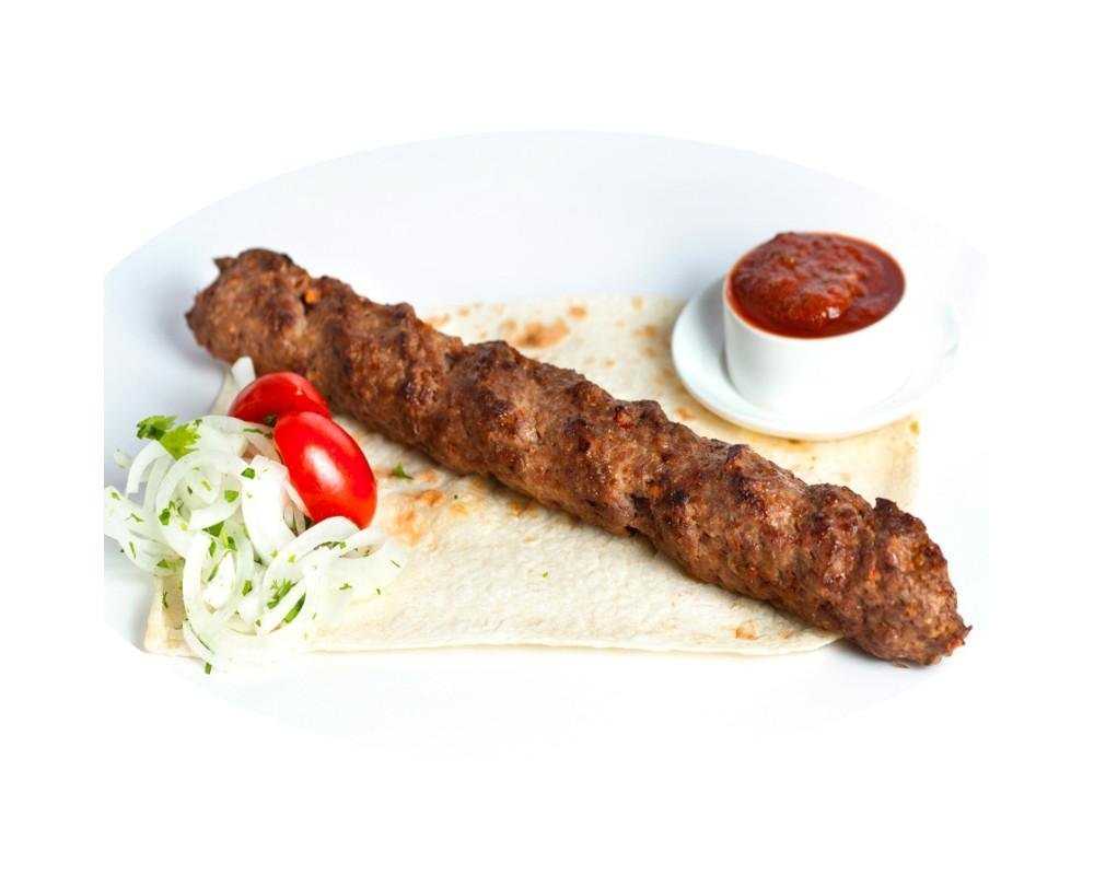 - Люля-кебаб, приготовленный из говядины, хорошо сочетается с острыми томатными соусами, свежими овощами и маринованным красным луком.