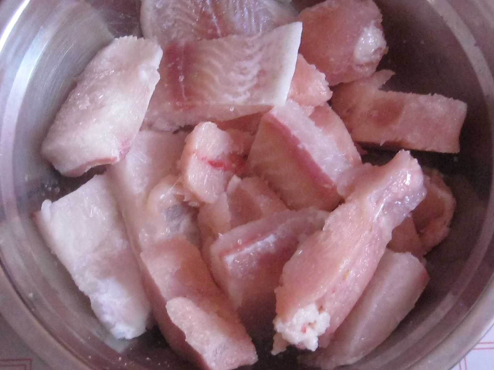 - Рыбу вымыть, дать стечь лишней воде и порезать на порционные куски.