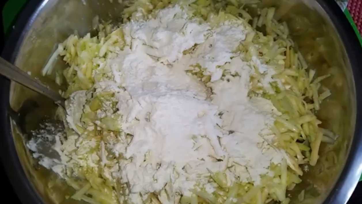 - Мука — от 2 до 6 ст.л.(зависит от количества сока, который будут выделять кабачки)