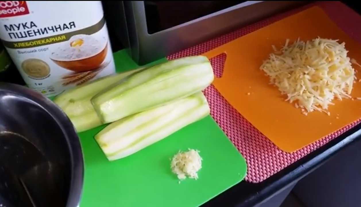 - Очищаем кабачки и натираем на крупной терке.