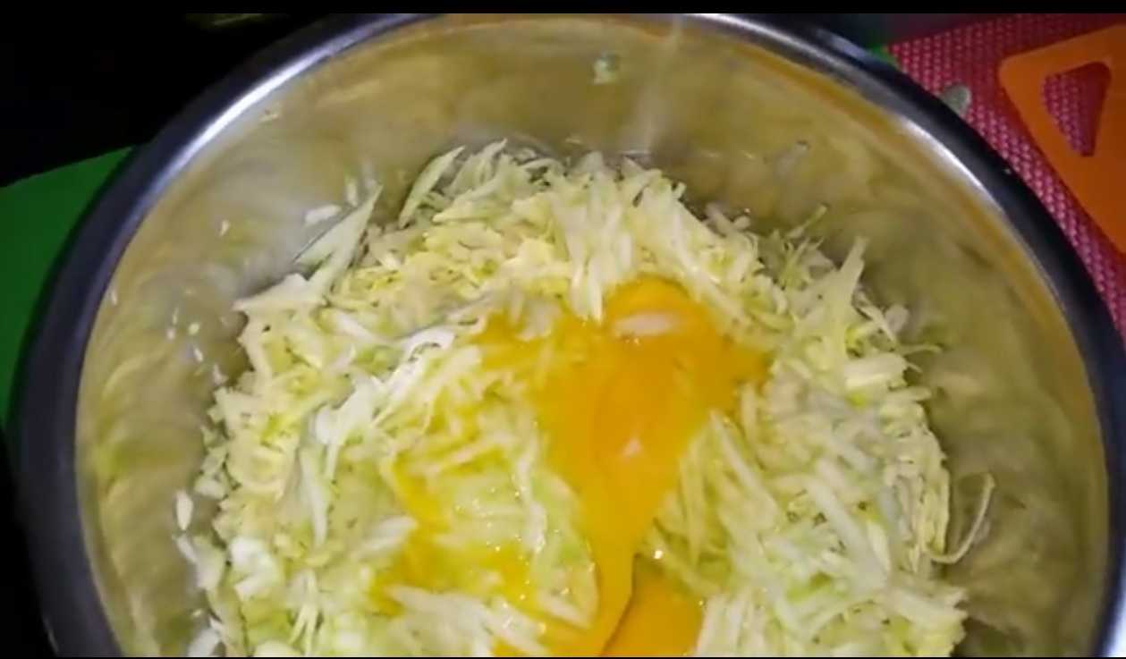 - Добавляем к массе яйца и хорошо ее перемешиваем.