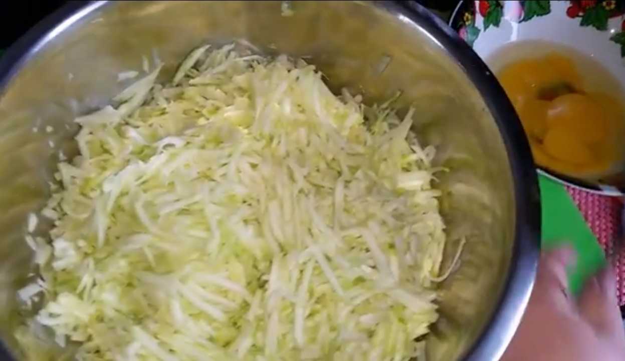 Кабачки натереть на крупной терке (при необходимости слить сок).