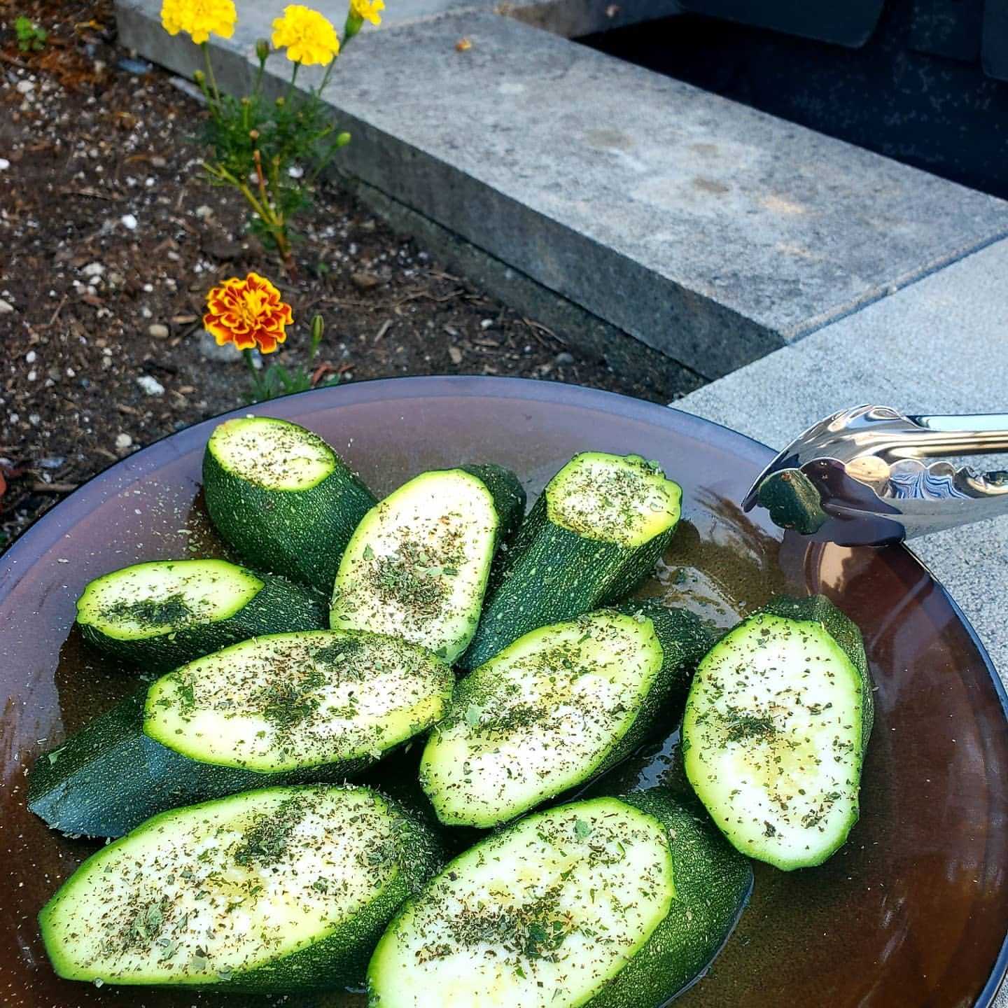 Овощи на гриле с уксусом маринуются быстро, достаточно 10 минут.