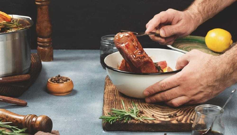 Замаринованные в этом соусе субпродукты подойдут даже для шашлыков, которые будут приготовляться на сухой сковороде.