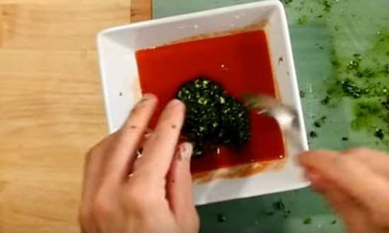 Подготовка красного соуса для рулетиков