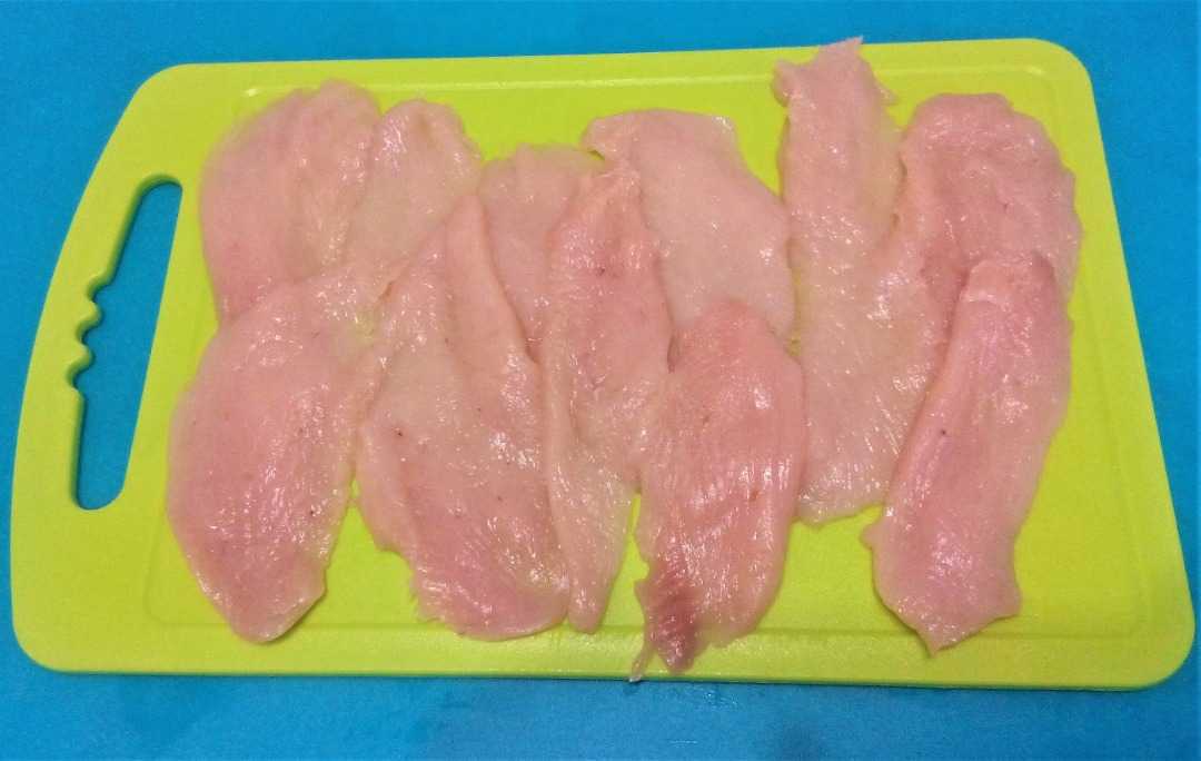 - Нарежьте мясо тонкими полосками и обжарьте его на среднем огне до золотистого цвета.