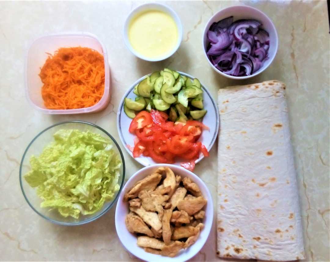 Все ингредиенты готовы. Нам останется только собрать нашу шаурму.