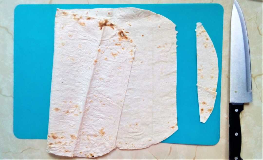 У лаваша я срезаю углы. Делается это для того, чтобы его было удобно свернуть, но в то же время и для того, чтобы лаваша не было очень много.