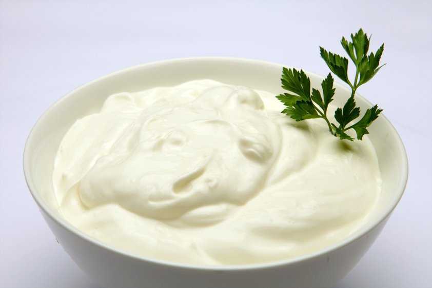 - Сделайте соус: cмешайте сметану с йогуртом, добавьте мелко нарубленную зелень (укроп и петрушку), черный молотый перец и соль.