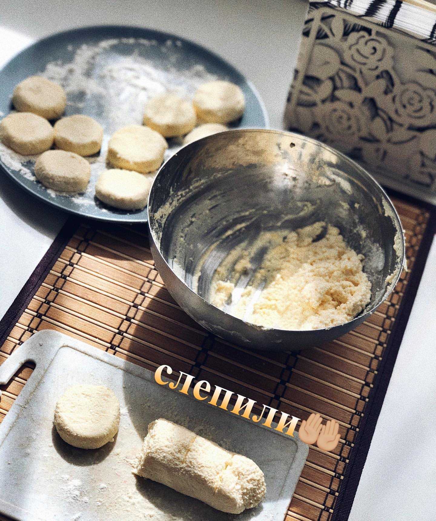 6. Руки смочить в воде, взять 1 ст.л. творожной массы, сформировать шарик и хорошо обвалять в муке. Выложить на присыпанную муку поверхность. Точно так же поступить с остальным творогом.