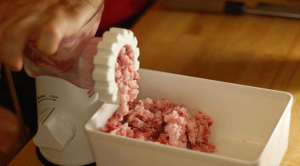 - Измельчение мяса до пастообразного состояния. Желательно предварительно убрать с филе жир и кожу.