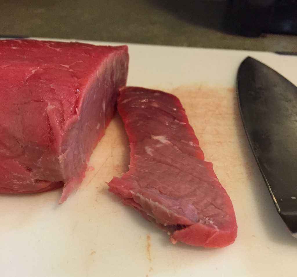 Любые рецепты джерки в сушилке включают процесс охлаждения мяса с последующей нарезкой на ломтики толщиной 3-5 мм.