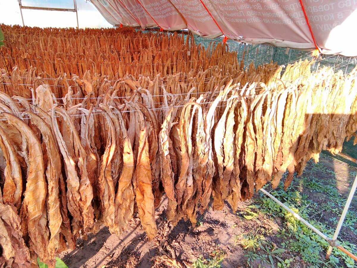 Сушка табака кустом — это не быстрый процесс. Обычно он занимает до 2 месяцев, в зависимости от температуры воздуха. Сушить следует в освещённом тёплом сухом помещении. Для этих целей прекрасно подойдёт теплица.