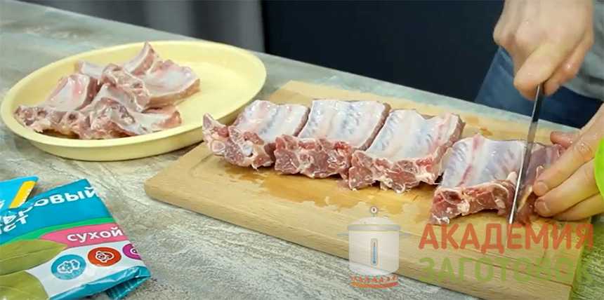 Чтобы мясо хорошо промариновалось и прокоптилось, в каждом куске должно быть не более 2-3 ребер. После того, как свинина выбрана и подготовлена, можно начинать готовить копченые ребра.