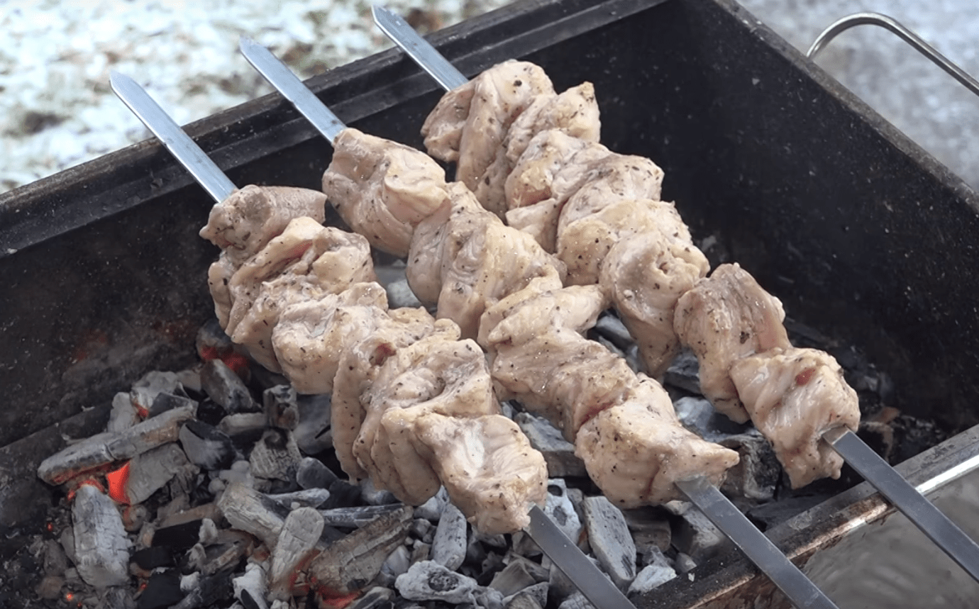 Есть негласная формула: каждый сантиметр (по толщине кусочка) необходимо обжаривать не менее трёх минут. Визуально определяют толщину и рассчитывают время. Чтобы температуру обжарки поддерживать оптимальной, необходимо ворошить угли мангала.