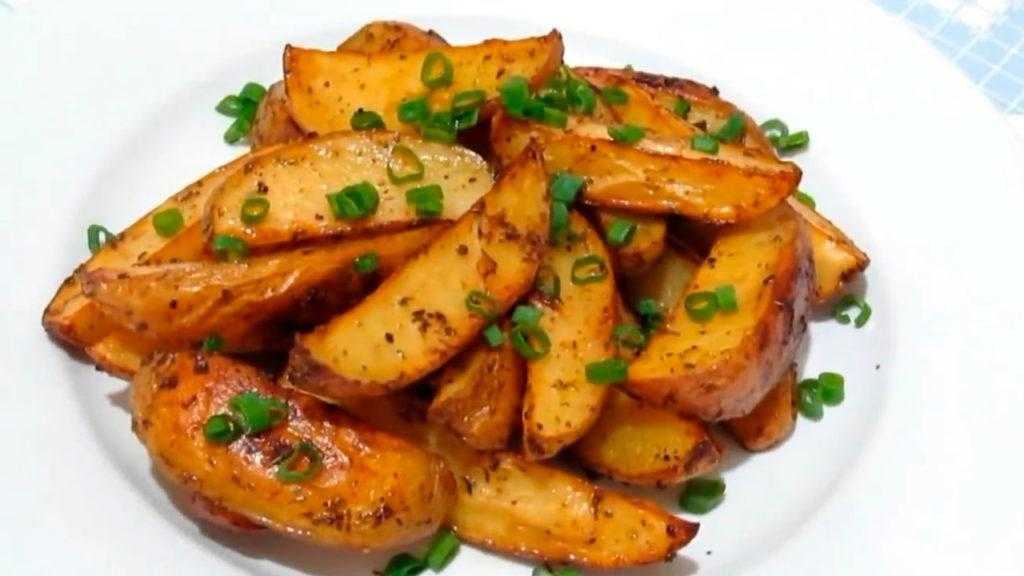 Масло должно равномерно распределиться по картофельным долькам со всех сторон. Тогда готовая картошка будет румяной и с хрустящей корочкой снаружи, а внутри мягкой и нежной