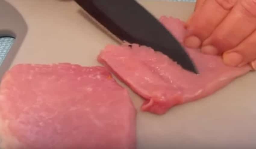 За это время приготовим мясо. Можно использовать любое мясо в этом рецепте. У нас сегодня свинина, вырезка — самое нежное мясо, которое готовится довольно быстро.