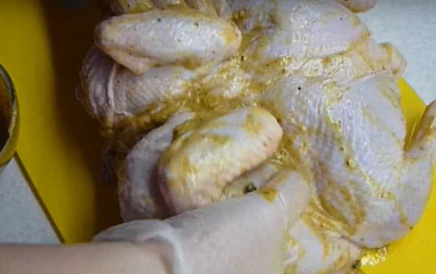 3. Хорошо промажьте соусом с внешней и внутренней стороны, включая области под крылышками и окорочками.