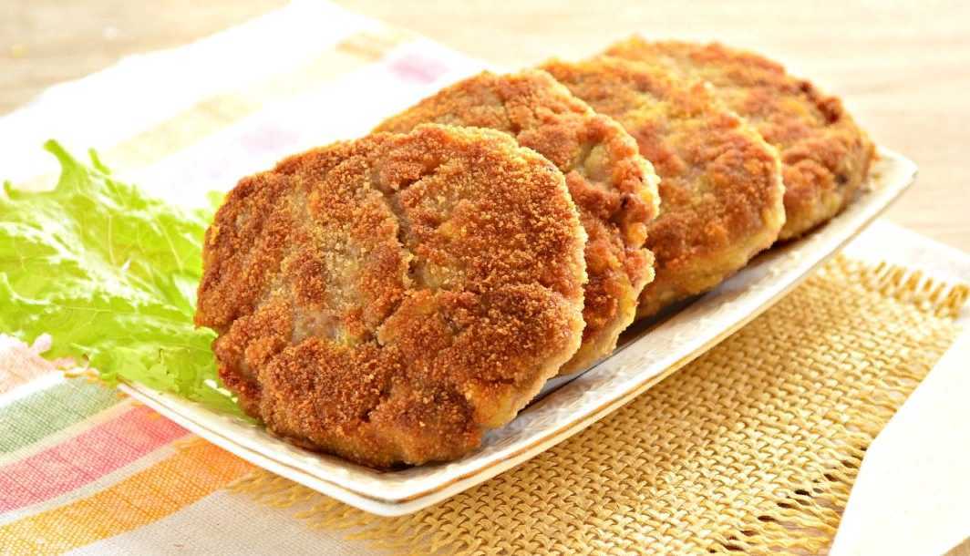 - В качестве панировки используют не только муку, но и сухарную крошку. В этом случае на жареных котлетах появляется аппетитная хрустящая корочка.