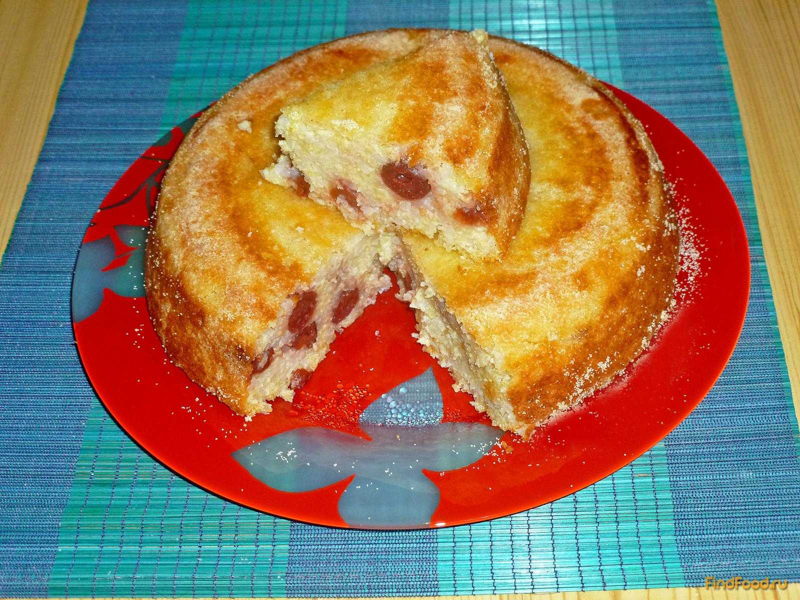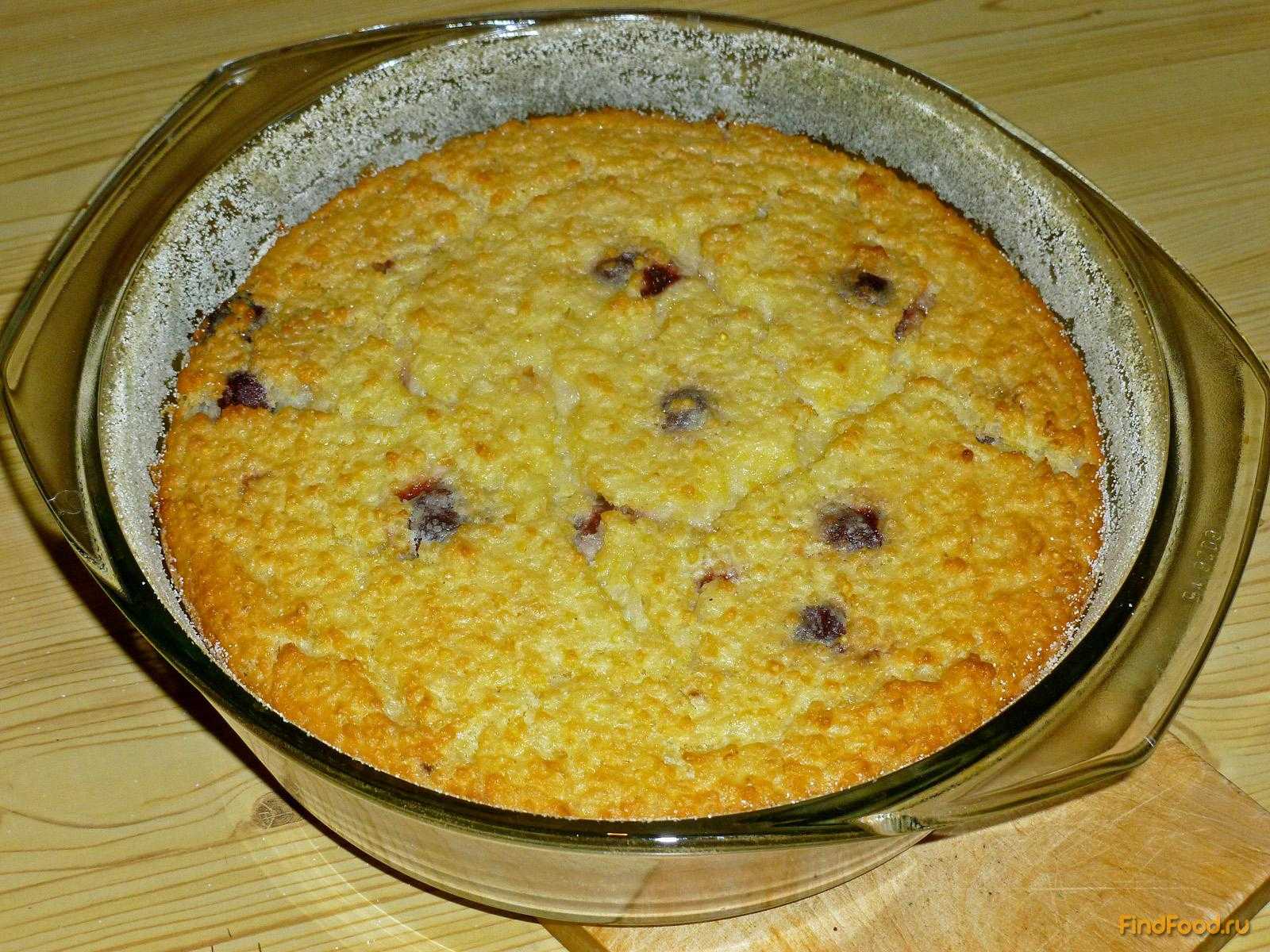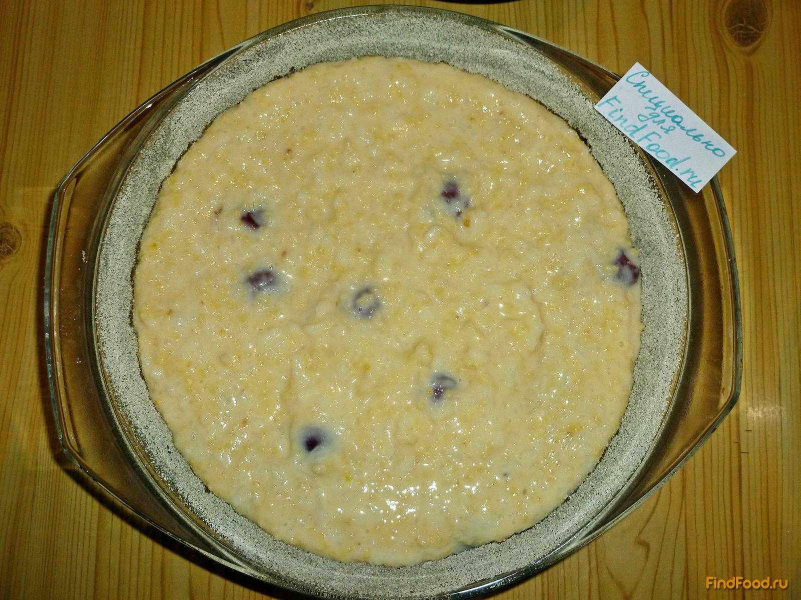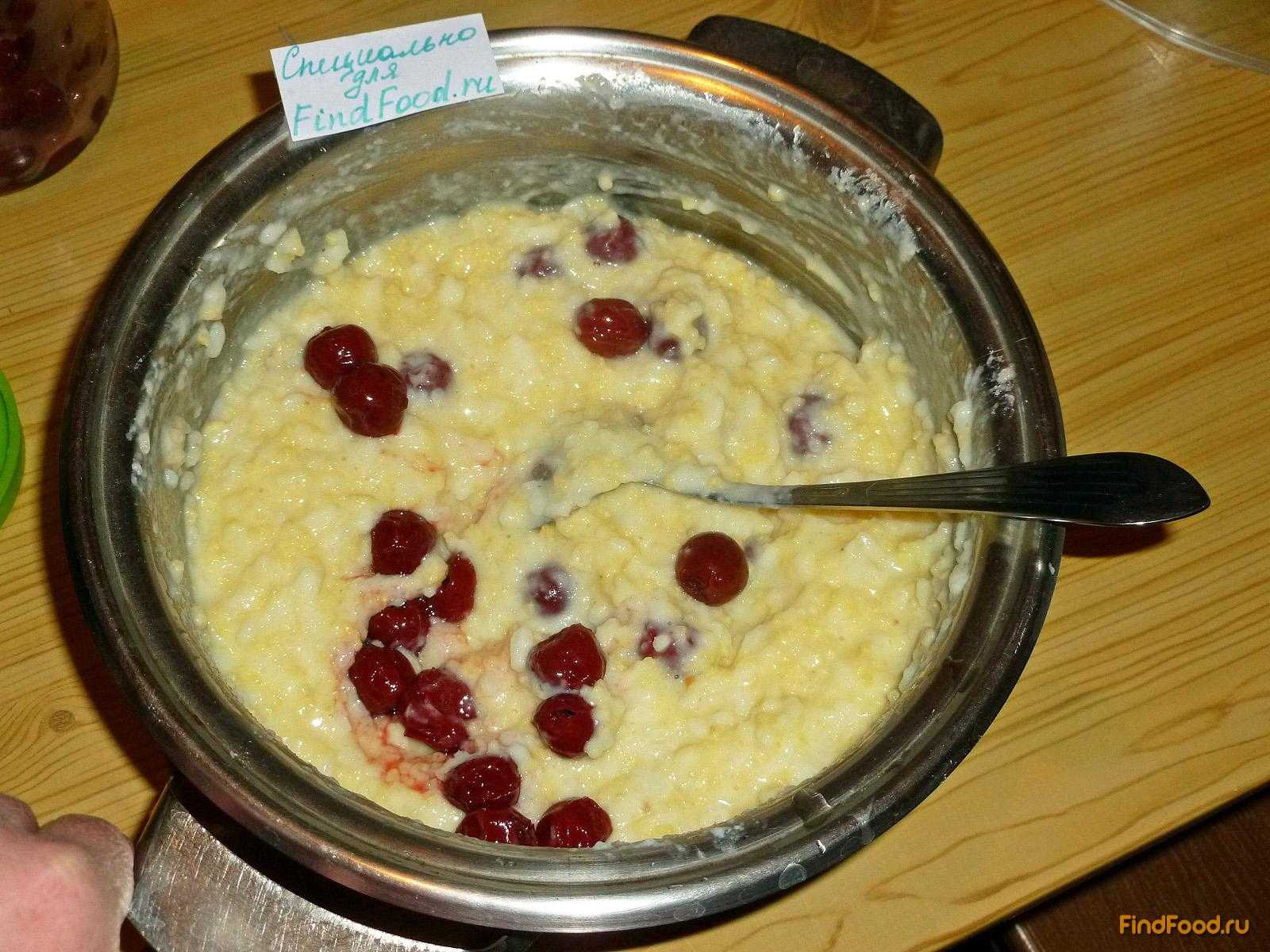 Затем добавить в массу вишню без косточки. Если с вишни стекает слишком много сока или сиропа, обязательно сцедите его. Вишню хорошенько вмешать в кашу.