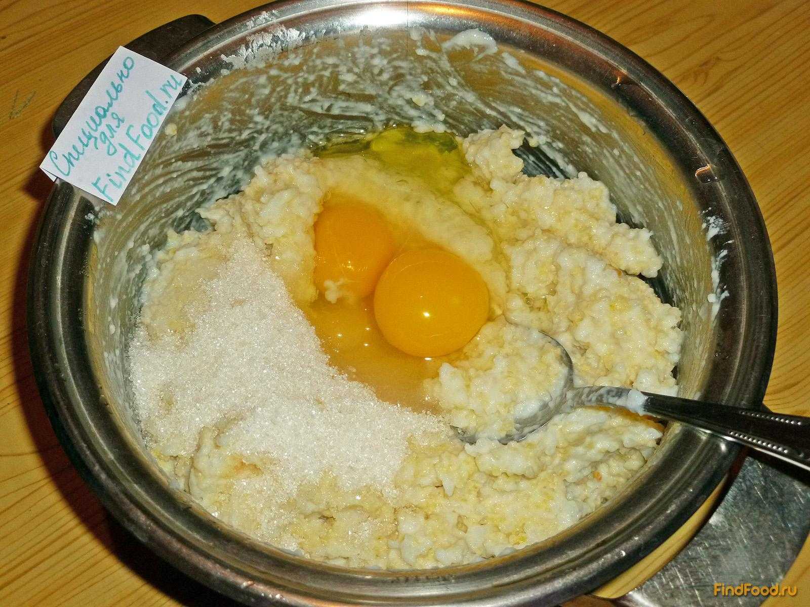 В остывшую кашу всыпать сахара, ванильный сахар, вбить яйца и хорошенько перемешать. Яйца предварительно взбивать не нужно.