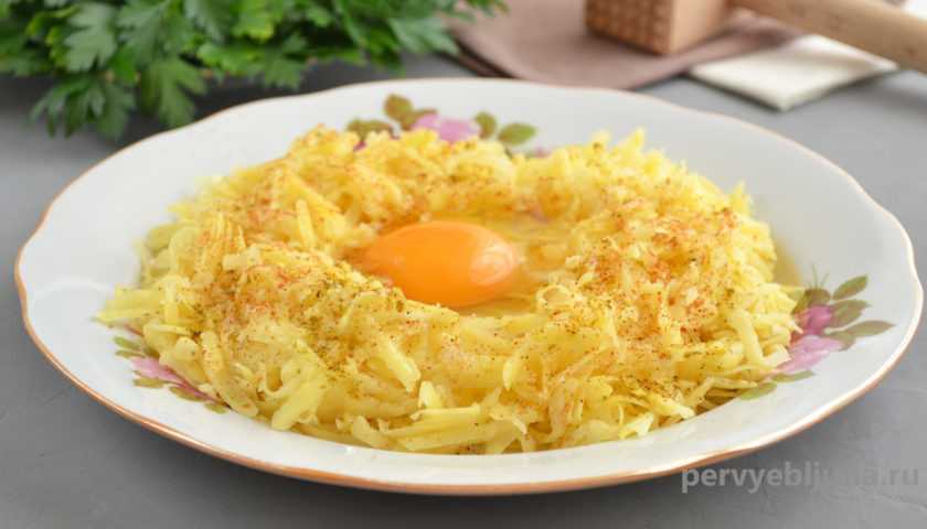 5. Посыпаем измельченный картофель хмели-сунели, красным жгучим перцем и дополняем куриным яйцом.