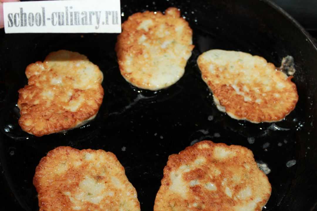 Слепить оладьи из приготовленной массы и обжарить с двух сторон до появления золотистой корочки.