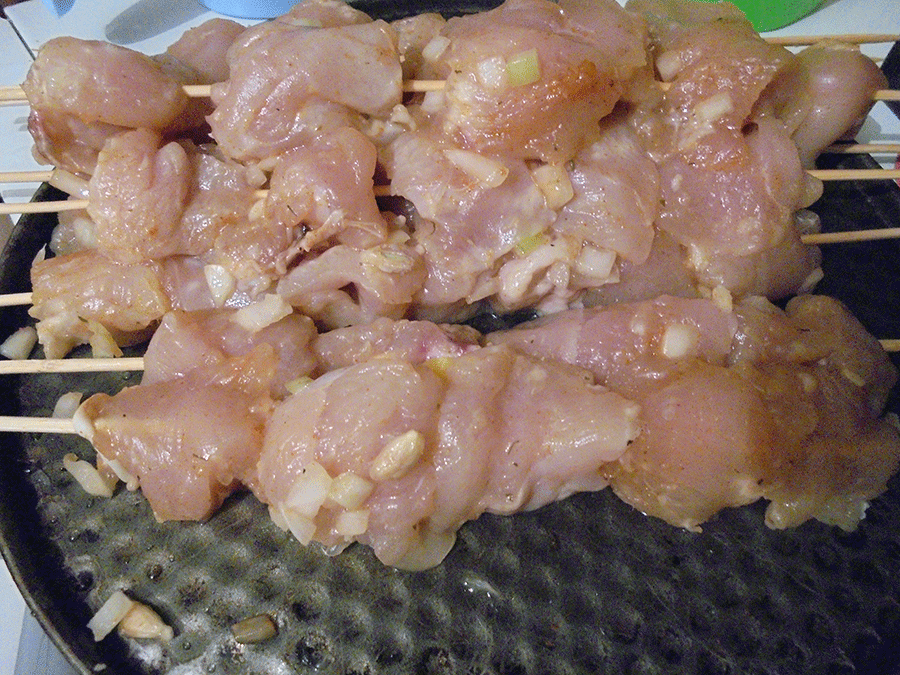 В ингредиентах я никогда точно не указываю количество соли, перца и других специй, потому что это очень индивидуально. Даже в одной семье могут быть разные предпочтения, поэтому ориентируйтесь пжл на свой вкус и добавляйте специи столько, сколько считаете нужным. Оставляем замаринованные грудки на пару часов в холодильнике. Когда время подошло, нанизываем на шампура, достаточно плотненько.