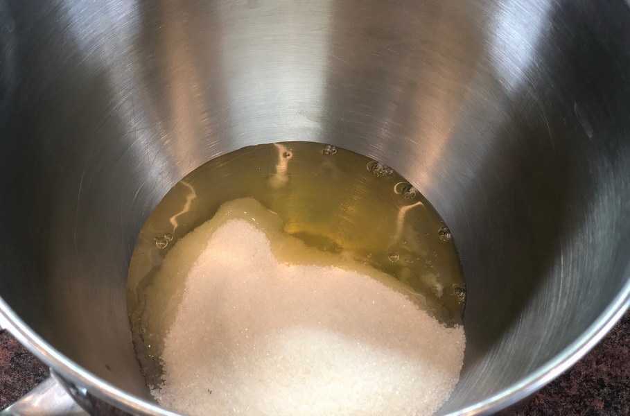 В чаше блендера смешиваются соль, мука, часть сахара, а также масло, нарезанное небольшими кубиками (масло необходимо добавлять в холодном виде). Все рубится до тех пор, пока не образуются небольшие кусочки.