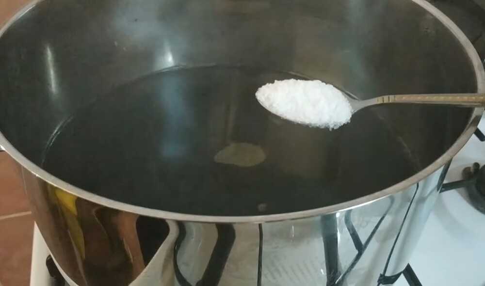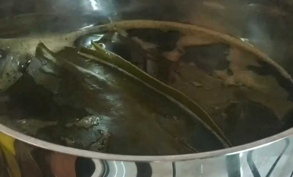 - А пока стекает вода, приготовить маринад. В небольшую жароупорную емкость налить литр воды, положить туда порезанный ножом чеснок, гвоздику, дубовые (или другие) листья, лаврушку, душистый перец, соль, сахарный песок.