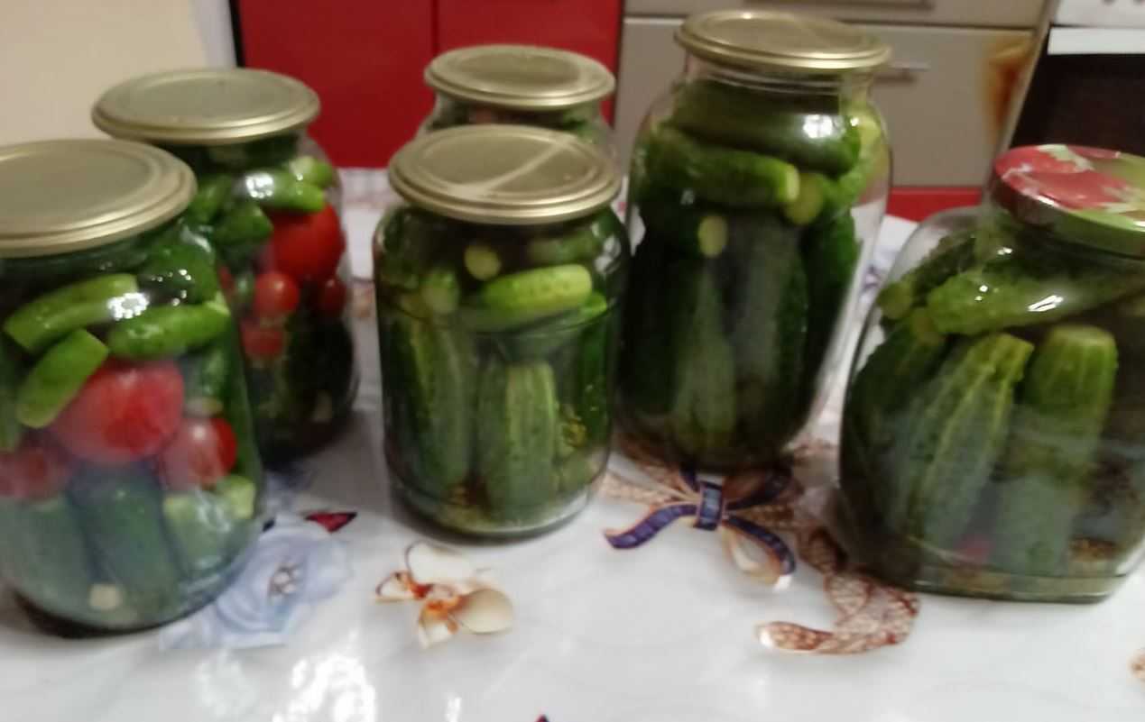 Огурцы с помидорами на зиму — рецепт маринада на 1 литр воды
