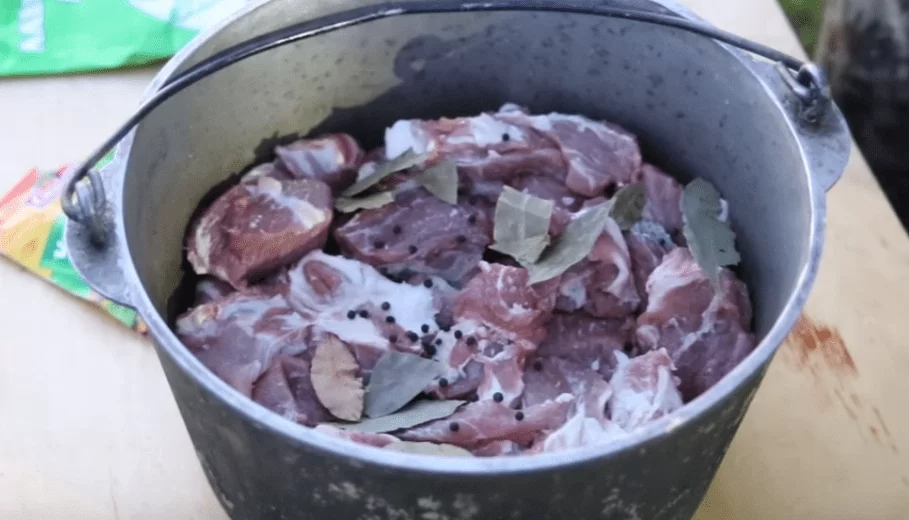 2. Закрываем кастрюлю и оставляем свинину настаиваться. Если она свежая, то хватит и одного часа, если не очень, то лучше подождать 2,5-3 часа.