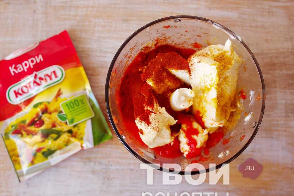 В чашу блендера сложить запеченный красный перец, мягкое сливочное масло, добавить молотую паприку, кайенский перец и сухой микс карри — на высоких оборотах взбить в однородную массу как суфле.