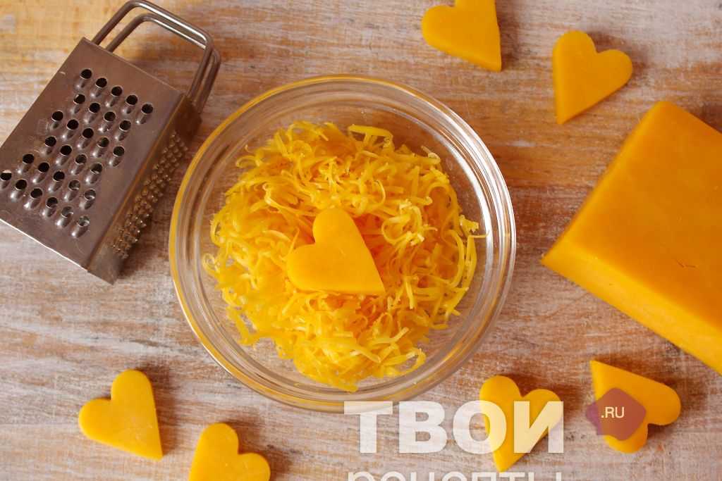 Твёрдый сыр с характерным вкусом, типа Маасдам или Чеддер натереть на средней тёрке.