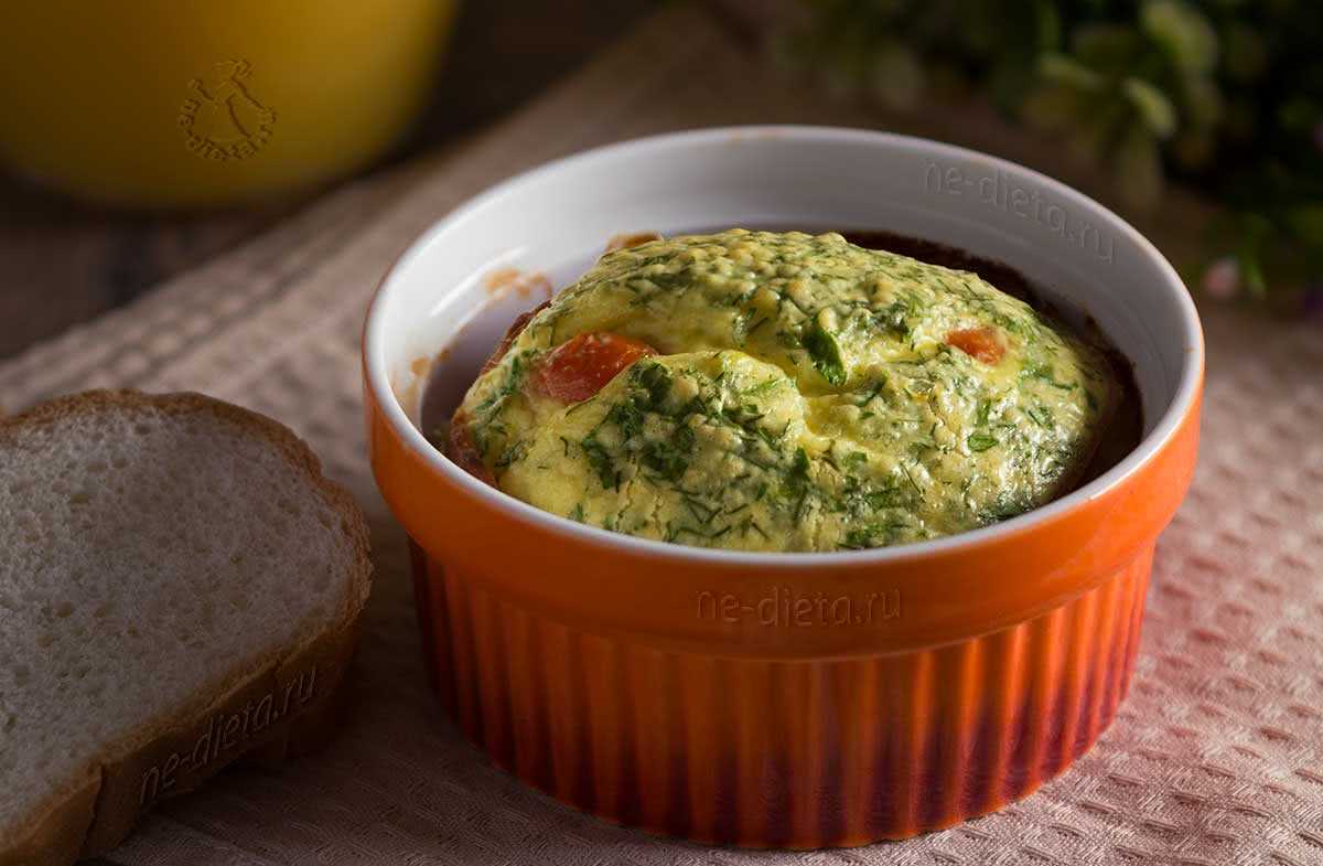 Пышный омлет с ветчиной и помидорами в духовке.