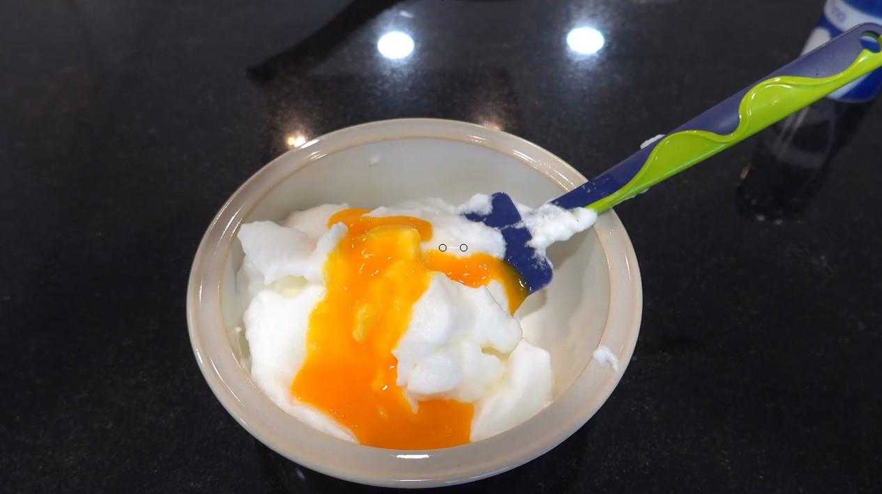 Желтки аккуратно вводим в белки. И потихонечку перемешиваем все в однородную массу.