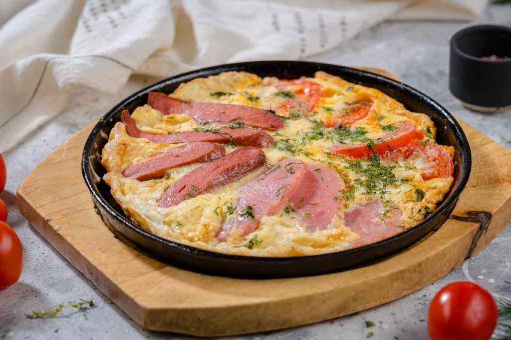 Рецепт омлета с колбасой и сыром в духовке