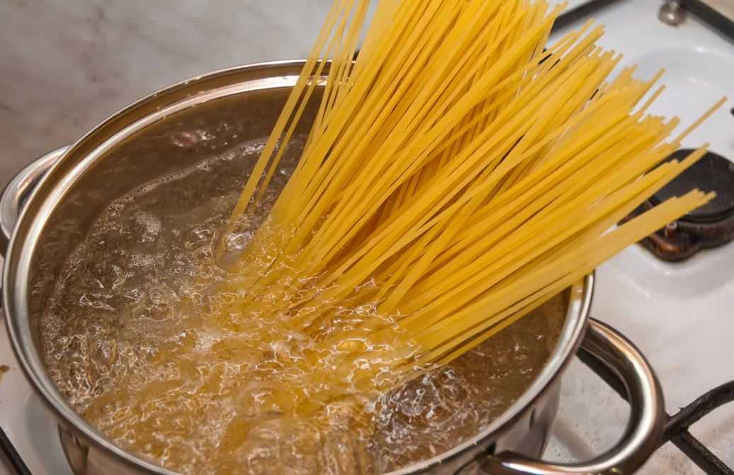 Длинные изделия не ломают, а целиком кладут в воду, чтобы концы торчали из кастрюли.