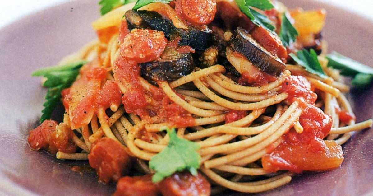 Сегодня мы пригласим вас на ужин в итальянском стиле и поделимся с вами рецептом замечательного блюда, которое может собрать за столом всю семью! Приготовьте вкусную пасту с ароматным, ароматным и аппетитным соусом из баклажанов и томатов. А чтобы наше блюдо тоже получилось сытным, добавим охотничьи колбаски.