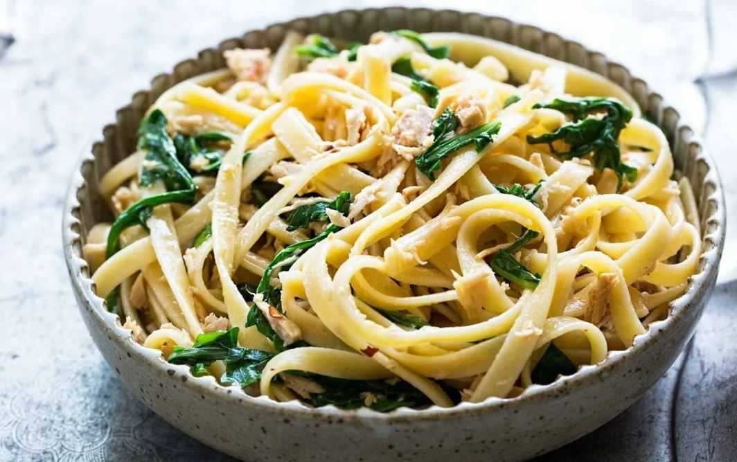 Паста с тунцом и шпинатом
