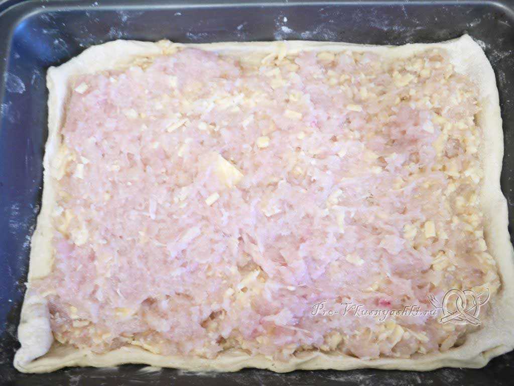Приготовление слоеного пирога с курицей и картофелем пошагово