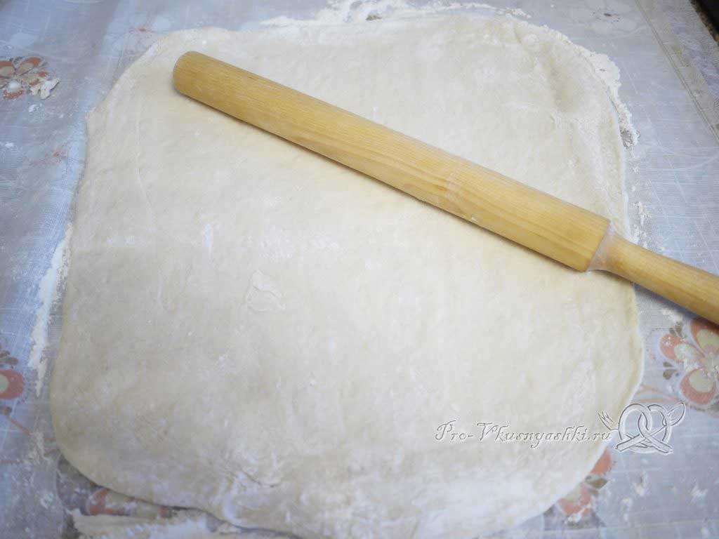 Пока занимались мясом, тесто поднялось и можно приступать к его раскатке.