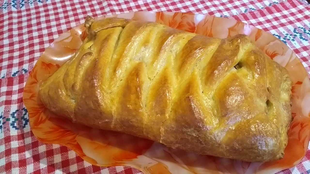 Пирог с курицей из дрожжевого слоеного теста: рецепт с фото