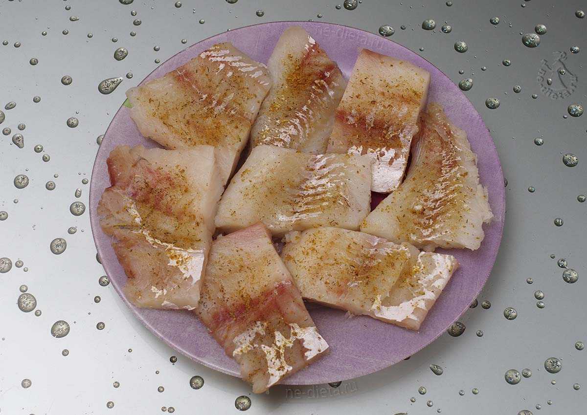 Рыбное филе вымыть и обсушить на бумажных полотенцах. Нарезать филе достаточно крупными ломтиками и натереть с двух сторон солью и специями.